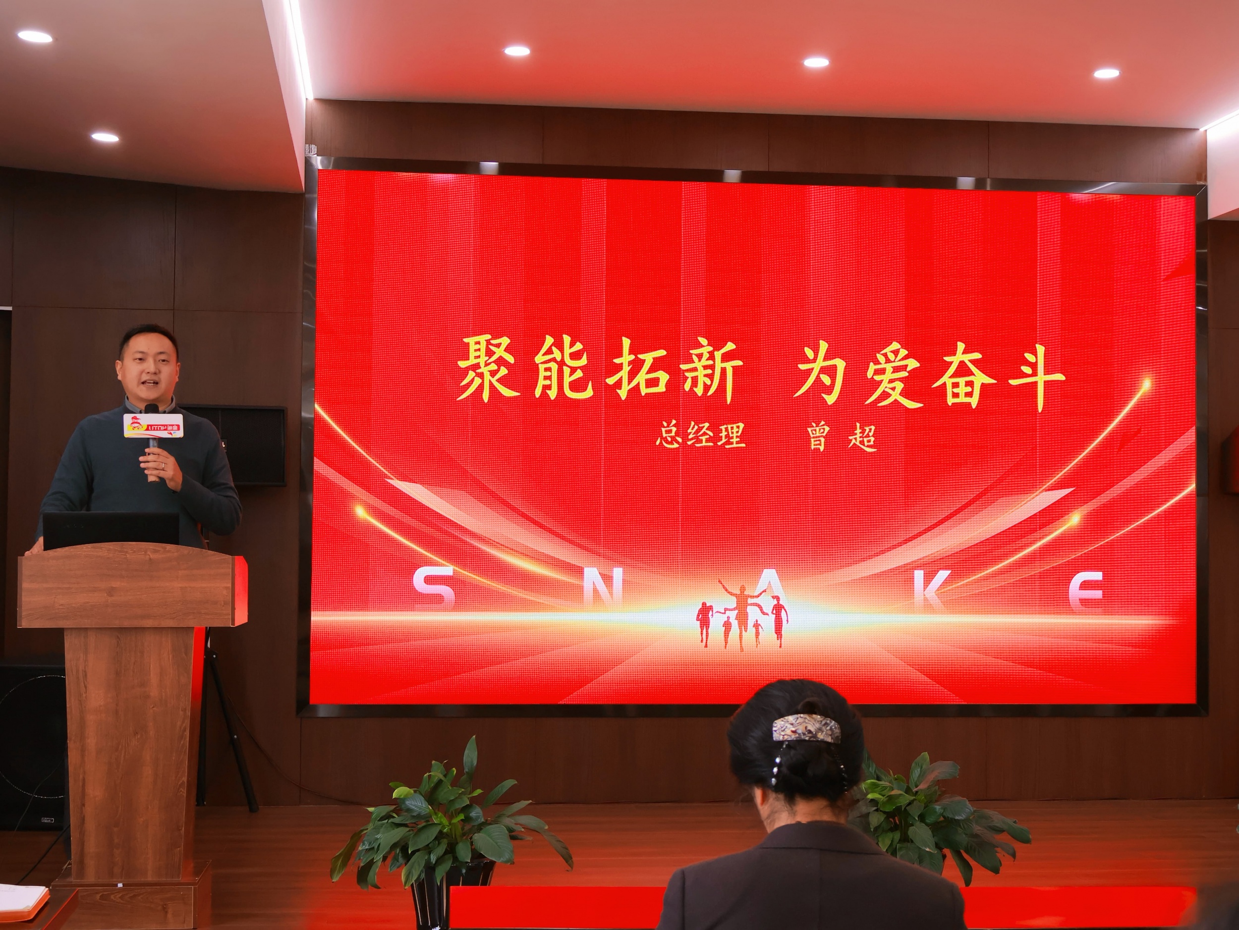 曾超总经理发表了以《聚能拓新·为爱奋斗》为主题的年度工作报告,一张张照片,一串串数字,总结了2024年350vip浦京集团的所取得的业绩和成就,以及面向未来的辉煌愿景。