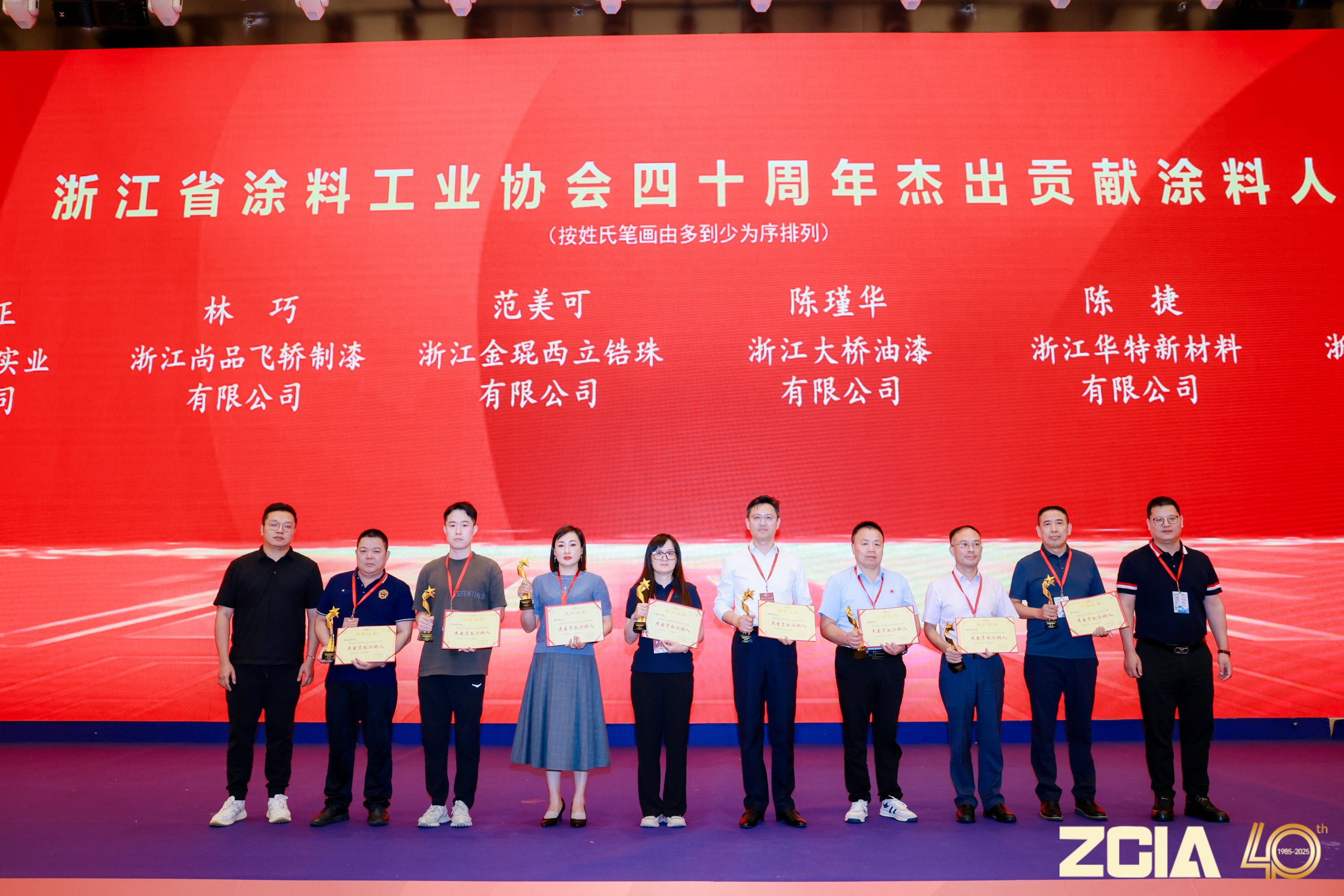 本次大会以“匠心四十浙里涂梦”为主题,聚焦回顾浙江涂料工业四十年发展历程,探讨行业绿色创新、技术升级与可持续发展路径,旨在凝聚行业共识,推动产业向高质量、绿色化、智能化方向迈进,助力浙江涂料企业提升竞争力,开拓市场新空间。会议邀请了中国涂料工业协会丁艳梅副会长、中国涂料工业协会刘杰秘书长、中国国际科技促进会涂层防腐技术创新分会殷岩勤执行会长,以及广东省涂料协会、江苏省涂料行业协会、福建省涂料工业协会、山东省涂料行业协会、安徽省涂料行业协会、河南省涂料行业协会、宁波市涂料行业协会等嘉宾以及众多行业专家、企业代表齐聚一堂,共同见证了这一凝聚行业智慧与力量的盛事。